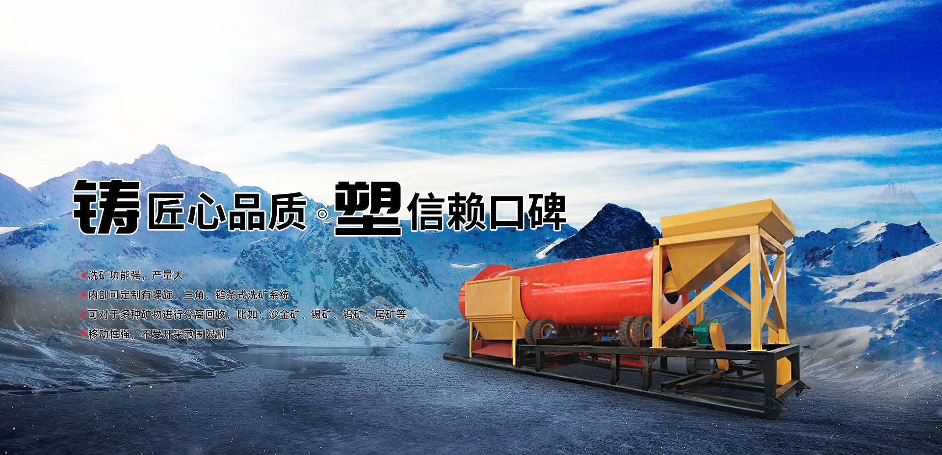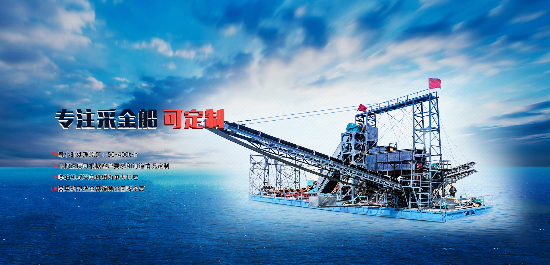 主打產(chǎn)品 根據(jù)礦料定制:選礦設備 沙金礦開采設備 尾礦回收設備 采金船 離心機等產(chǎn)品